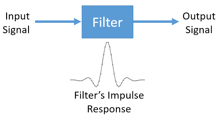To actually use the FIR filter on a signal, there are several options, and they all involve performing a convolution operation between the samples we want to filter, and the filter taps we generated above: