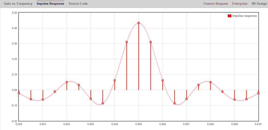 Simply plotting this array of floats gives us the filter’s impulse response: