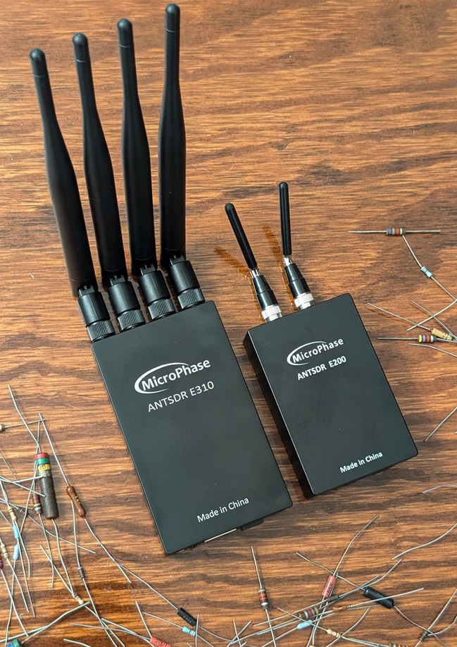 In addition to the E200, MicroPhase also makes a model call the AntSDR E310. The AntSDR E310 is very similar to the E200, except it has the 2nd receive and 2nd transmit channel exposed as SMA connectors on the front, and it currently only supports the Pluto/IIO mode (no USRP mode). It uses the same FPGA as the E200. One other difference is that is has an extra USB C port that acts as a USB OTG interface (e.g., to attach a USB drive). The AntSDR E310 is only available on AliExpress (not Crowd Supply, like the E200). At the time of this writing the E310 is roughly the same price as the E200, so if you don’t plan on using “USRP-mode”, and value having the extra channels exposed over SMA even if it means a slightly larger form factor, the E310 is a good choice.