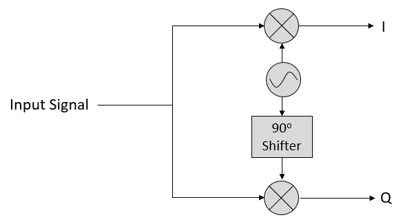 Now let’s take the perspective of a radio receiver that is trying to receive a signal (e.g., an FM radio signal). Using IQ sampling, the diagram now looks like: